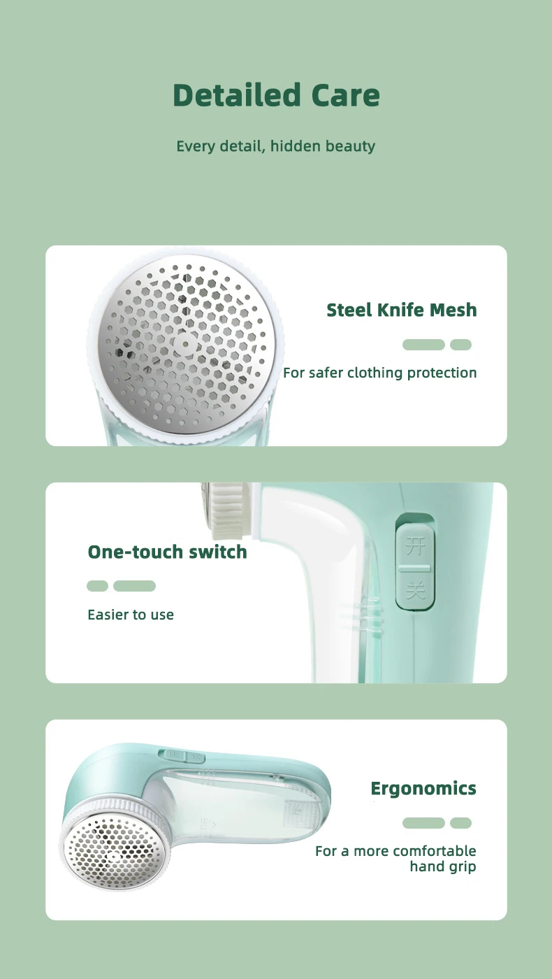 Package includes: 2 replacement heads, 1 cleaning brush, 1 ball shaver, a Usb cable